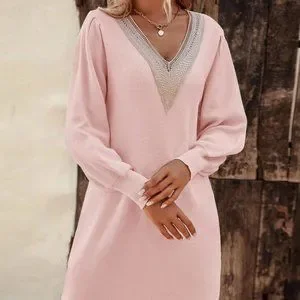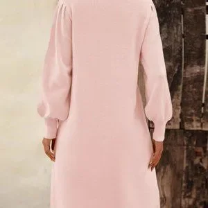 Lace detailed Lantern Sleeve Sweater Dress Baby Pink