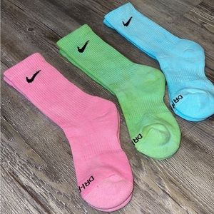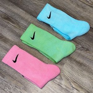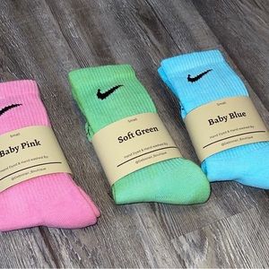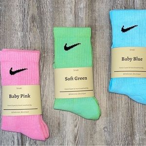 Authentic Hand Tie Dye Nike Socks Pack includes 3 pairs, Baby pink, soft green, baby blue