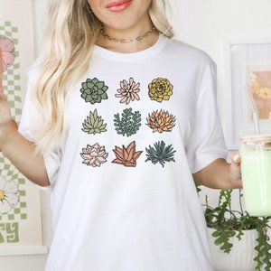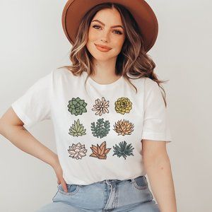 Succulents Graphic T-shirt Boho Plant Lovers T-shirt Plant Lady - Unisex - White