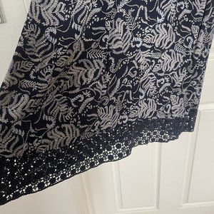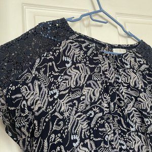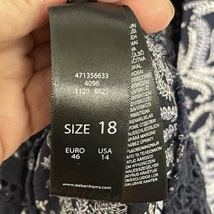 Pretty flowy polyester and crochet dress by RJR John Rocha. Dress is size 18. Dress has a side zipper, button around the back of the neck and a tie back. Please refer to photos, they make up part of the description.