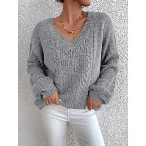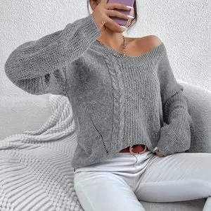 πͺ GREY CABLE KNIT V NECK LOOSE SWEATER!