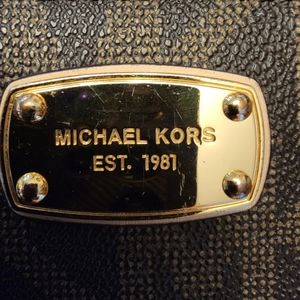 MK monogram wallet with wristlet. Gold hardware in good condition. The MK gold plate has a few scratches (see photos). Zipper is super smooth! Really nice classic MK design. Lots of credit card space!