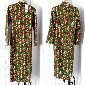 π ZARA GREEN ABSTRACT PRINT FLORAL MOCK NECK SLIT MAXI DRESS!