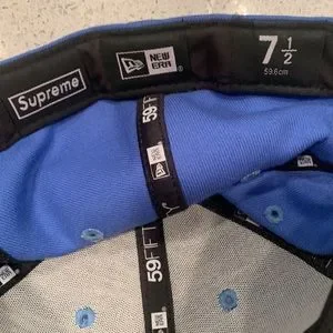Supreme “iced” New Era cap. Size:7-1/2”. Gently used condition. Light blue in color.