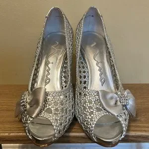Y2K Nina silver mesh heels