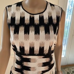 Black & Cream Peplum "Jolyne" Sleveless Top, fully zips in the back, Single hook and eye closure at top, Flesh tone lining