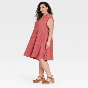 Knox Rose - Women's Flutter Textured Tiered A-Line Coral Red Dress - Size: XXL