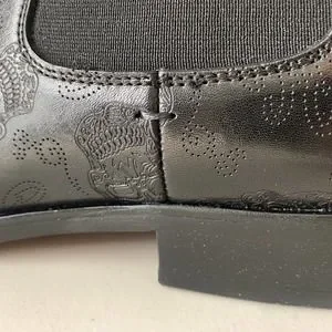 A padded leather footbed means superior comfort in a classic Chelsea boot emblazoned with floral and skull details for eye-catching appeal.