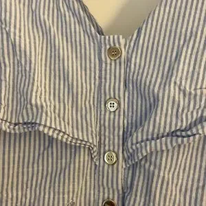 ZARA Blu/white Striped Jumpsuit with pockets. Size S. Button Frint, tie waist. Shoulder to waist 15”; waist to hem 34”. Fun outfit!