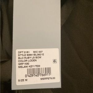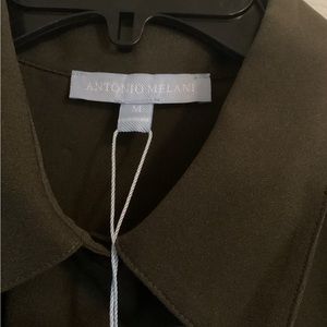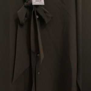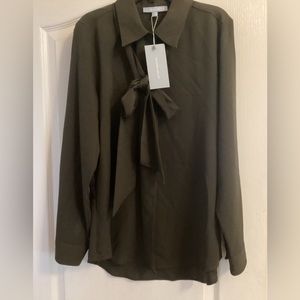 NWT Antonio Melani Olive Green Detachable Bow Tie Long Sleeve Button Blouse