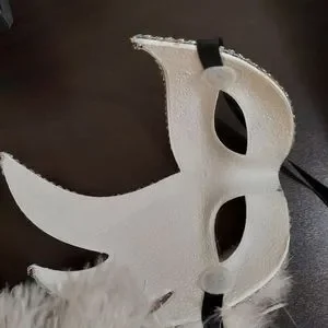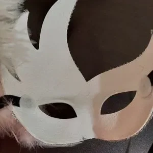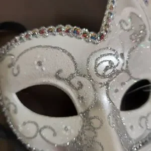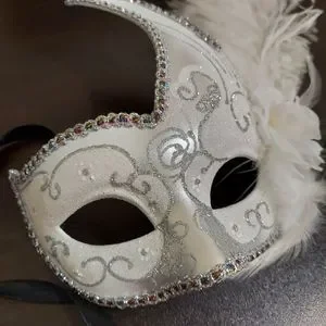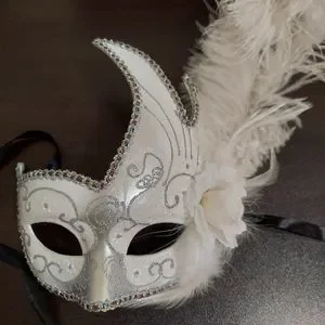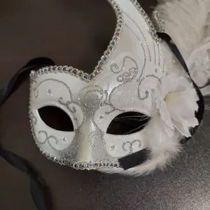 Women's Ostrich Feather Venetian Masquerade mask. White/ Silver. One Size