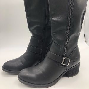 Black soft leather, zipper closure, ridding style boots.