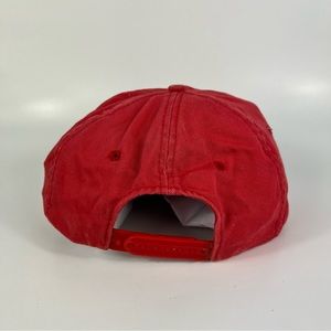 In good condition! Funny graphic of a man fixing a TV, saying ‘Don’t worry I’ll fix it!’ Red colored hat with a colorful print. Embroidered blue wrench detail. Adjustable back. Gently used.