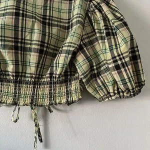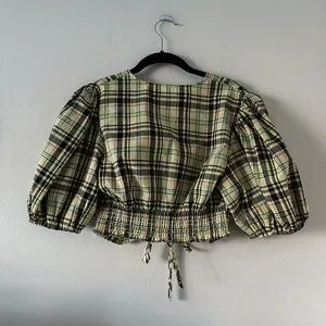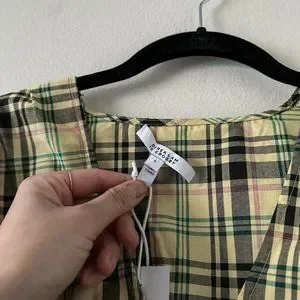Derek Lam 10 Crosby Bella Crop Top Yellow Plaid Womens Size 6