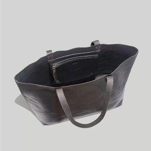 What goes into our signature tote? Here it is by the numbers: 2 pieces of fine leather are used for the body. 8-inch strap drop: long enough to sling over your shoulder, but short enough to hold as a top handle. 1 interior side zip pocket to keep your keys, phone and wallet at the ready. 24: the number of hours in a day that this bag looks cool. How often you'll reach for it? 500 gazillion times.