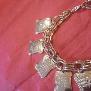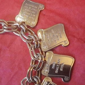 Gold tone 10 Comments Charm Bracelet. Each charm is a scroll that has 1 of the 10 Comments on it. Brand new, never worn. Box was damaged.