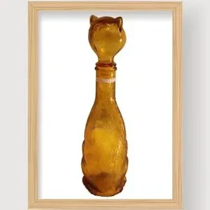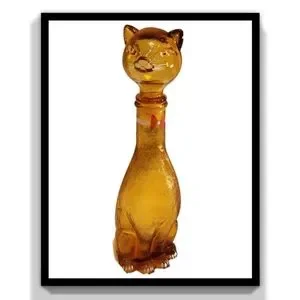 It's in perfect condition with no chips or cracks. It's clean and has all the original paint on the bottle. The glass is textured like a cat's fur. The plastic insert around the stopper is still intact. It measures 14" tall x approximately 4" wide at the base. It's an awesome antique collection piece.