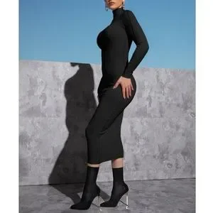 π€ BLACK MOCK NECK BODYCON MAXI DRESS!