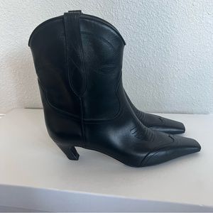 Khaite Dallas Black Leather Ankle Boots Bootie Size 37 Short Western