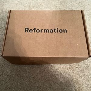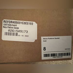 NEVER BEEN WORN AND STILL IN BOX!!! Reformation gold Mazie platform heel. Size 8.