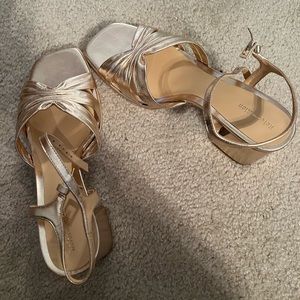 Never worn. Reformation Mazie Platform Heel in Gold Size 8