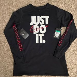 Nike Just Do It long sleeve t shirt. Size XL. Color is Black with White lettering and Red swoosh. New with tags.
