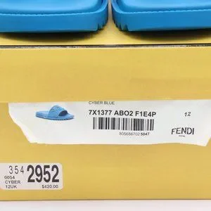 NIB FENDI Men's Blue FF Logo Slides Sandals