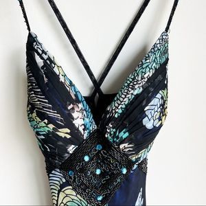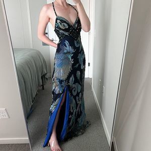 Beautifully beaded, elegant gown. Lightweight with a thigh slit and extremely feminine fit. Originally poshed it to wear for an event but my larger chest (DD) did not fit into it well.