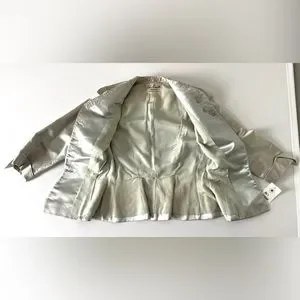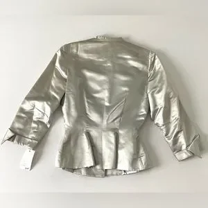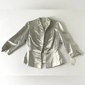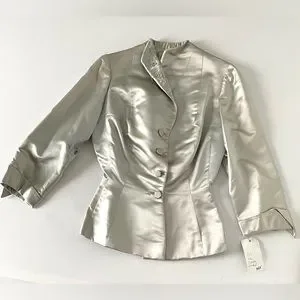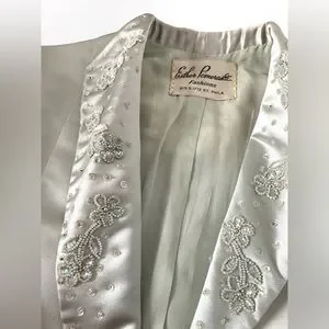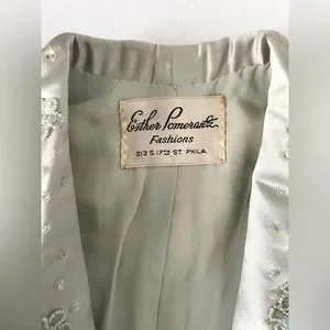 Vintage Silk Beaded Button Long Sleeve Blazer Esther Pomerantz Blue Silver Small