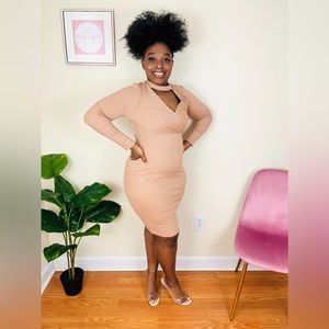 Nude Bodycon Sweater Dress