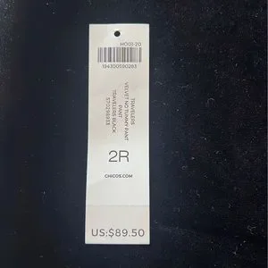 Chico's Black Velvet Travelers Pant 2R Large Size 12