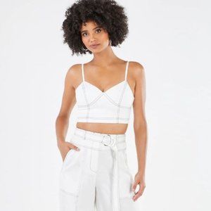 NWT Fitted crop top crafted from tencel linen. Designed in a bustier-style silhouette with topstitch detailing along the seams. Finished with adjustable straps and a back zip.