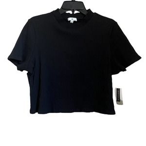 BP Nordstrom NWT Women’s Ribbed Mock Neck Crop Top Sz 3X Black Short Sleeve
