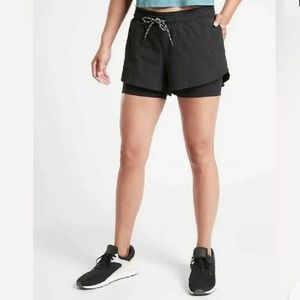 ATHLETA Women's Black CREST 2 in 1 Shortie Shorts Size 14