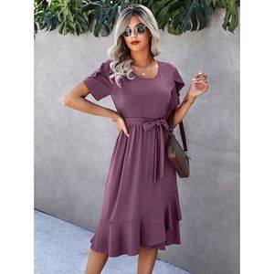 💜 BOHO PURPLE RUFFLE BELTED MIDI DRESS!