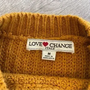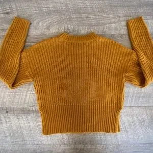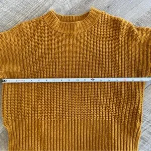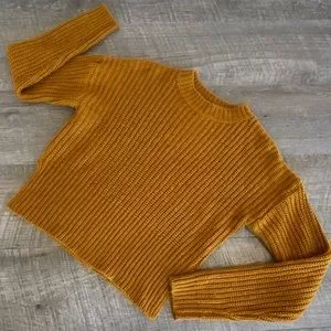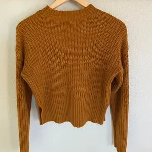 Slightly cropped crew neck sweater with side slits and banded bottom in size M