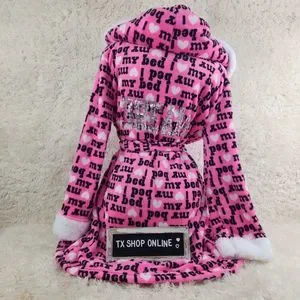 This robe has a cute bed print you will love and the material is super soft against the skin.