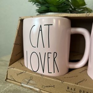 NEW Light Pink Rae Dunn Cat Lover & Meow Mug Set