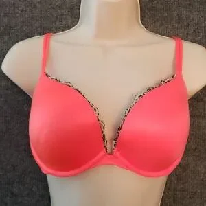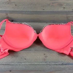 Victoria's Secret Very Sexy Push Up Bra Vibrant Orange Animal Print Lace Accent