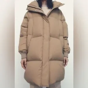 Zara Taupe Brown Down Coat Thermal Edition