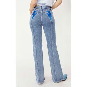 Fun and flared, this novelty jeans from our We The Free collection are featured in a high-rise silhouette with statement metallic lightning bolt detailing at the back for a statement-making touch.