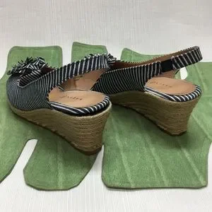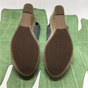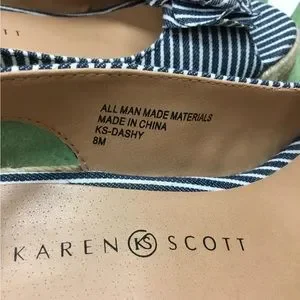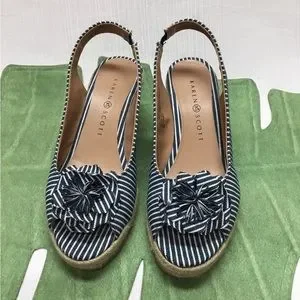 I Ship Fast. Lovely New Karen Scott Navy & White Stripe Wedges. Heel Height 2-1/2 Inches. Size 8M. Excellent Condition.