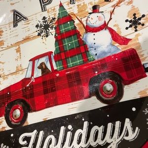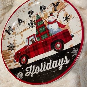 Sleigh bell bistro Christmas platter/serving tray Little Red Truck Certified International. Sleigh Bell Bistro Holiday Wheels. 13'x13"x1 1/2". No chips or cracks. Cottage Core Farmhouse Country Style. Thanks for looking