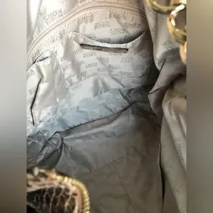 Gold toned Michael Kors hardware/as well as gold chain strap details