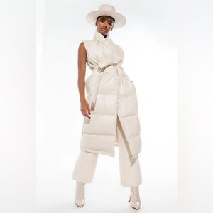 The Puffin Stuff Long PU Puffer Vest features a faux leather, PU-coated fabrication reminiscent of your fave down comforter. This cozy classic is complete with a sleeveless design, a high neckline, a duster length, and a smooth inner lining. Complete with a coordinating PU waist belt, two slant side pockets, and an open front design.