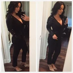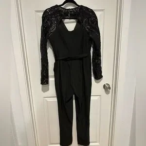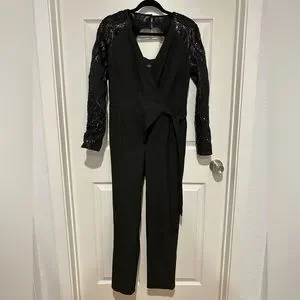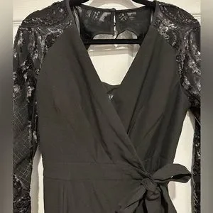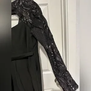 Little Mistress wrap front jumpsuit sequin sleeves.