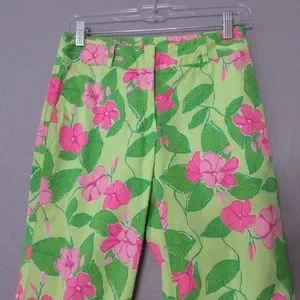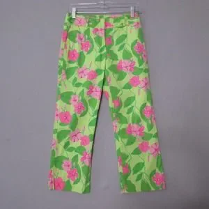 Vintage Lilly Pulitzer Pants Women 2 Floral Pink Green Flat Front Crop Capri