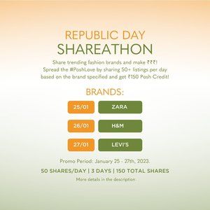 Spread the #PoshLove by sharing 50+ listings per day (community shares) based on the theme specified and get ₹150 Posh Credit.