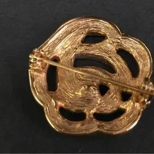 CHRISTIAN DIOR GOLD PLATED BROOCH PIN AUTHENTIC NEW WITH RHINESTONES! FLOWER!