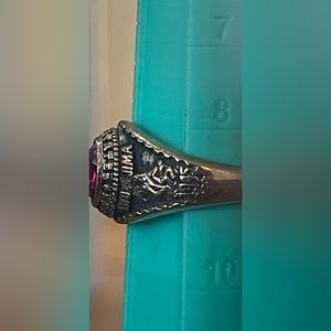 Fantastic condition. Size 8.5. U.S. Marine Corps Ring Jostens YLTM With Ruby StoneI am told this is a Marine Corps Graduation Ring. Marked on the inside - Jostens YLTM